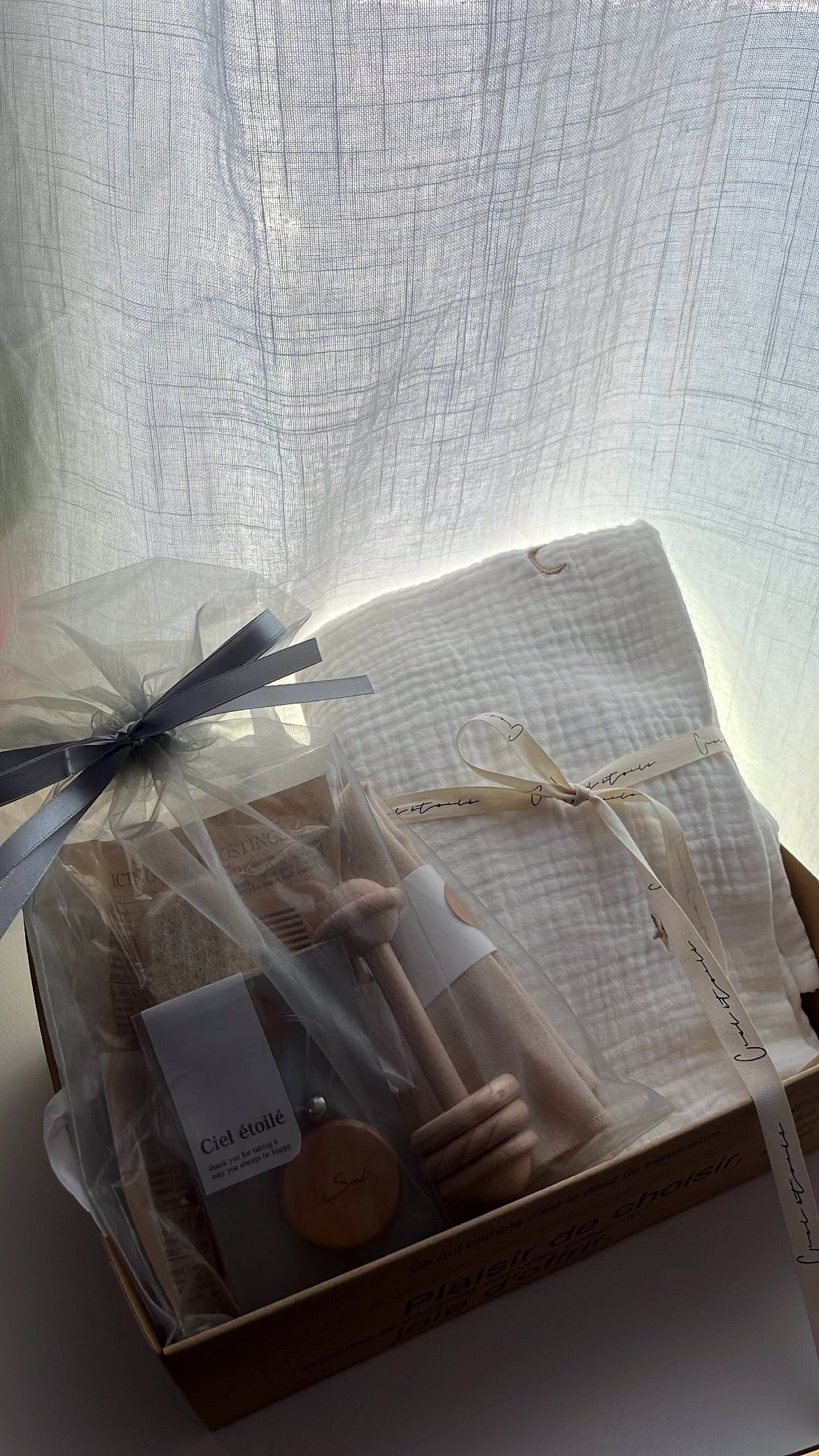 星と月のモチーフが刺繍された、通気性の良いダブルコットンのガーゼケット。